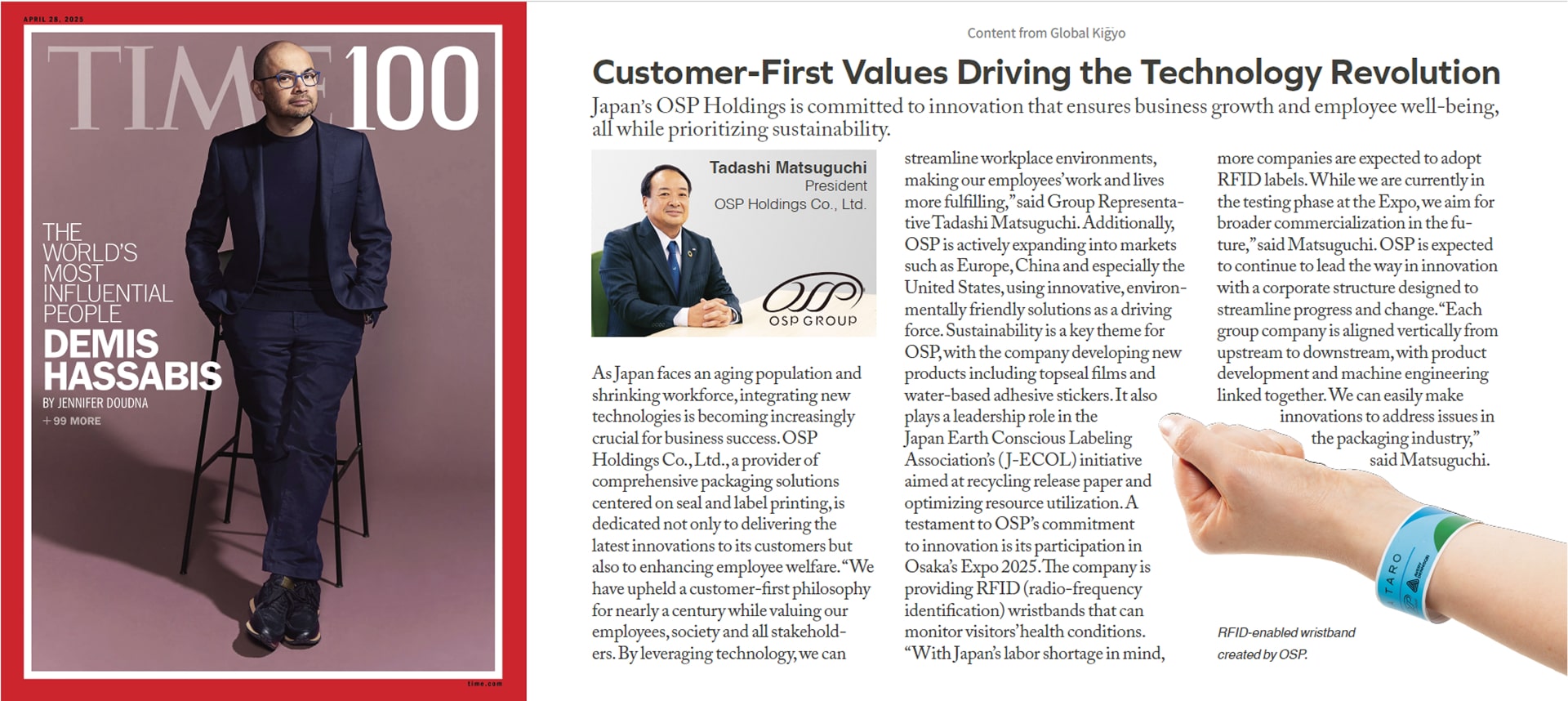 In der Asienausgabe des TIME-Magazins vom 28. April 2025 erschien ein Interview mit Tadashi Matsuguchi, CEO der OSP Group. In diesem Interview besprechen wir ausführlich die spezifischen Initiativen der Gruppe in Bezug auf Nachhaltigkeit, ihre Vision, Unternehmenswachstum und Mitarbeiterzufriedenheit in Einklang zu bringen, und ihr Sponsoring der Osaka-Kansai Expo. Bitte lesen Sie es.