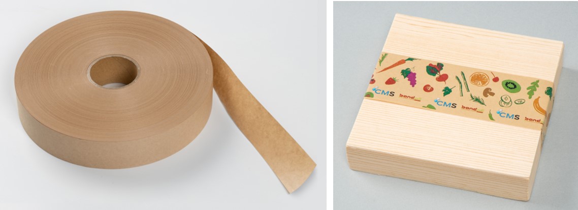 このたび、「ペーパック」をバンド包装としても使用いただけるように、帯状の形態で開発しました。ヒートシール性を活かして資材を束ねる結束や容器の封緘など、バンド包装として多岐に亘り活用いただくことを想定しています。
